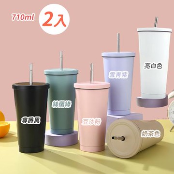 【逛逛市集】(2入) 304不銹鋼帶吸管冰霸杯 750ml (大容量 保溫杯 飲料杯 吸管杯)