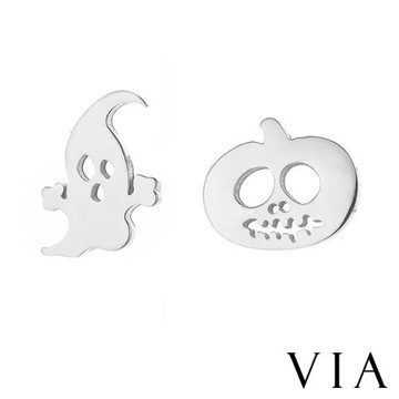 【VIA】節日系列 萬聖節不對稱鬼怪南瓜造型白鋼耳釘 造型耳釘 鋼色