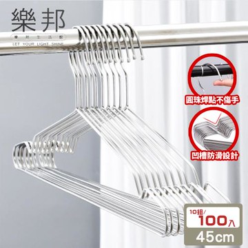 【樂邦】45CM 加粗實心防滑不鏽鋼衣架(10組/100支)-成人-慈濟共善