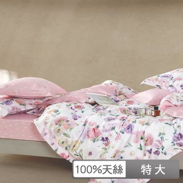 貝兒居家寢飾生活館 100%天絲四件式兩用被床包組 特大雙人 纖纖花語桔