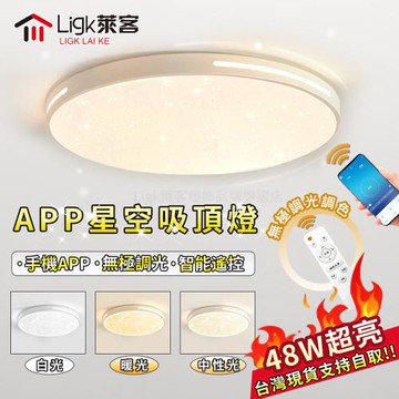 【Ligk萊客】吸頂燈 led吸頂燈 智能APP+遙控無極三色調光 40cm【APP+遙控三色調光】48W