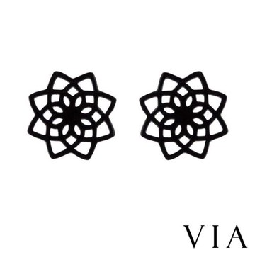 【VIA】植物系列 盛開蓮花造型白鋼耳釘 造型耳釘 黑色