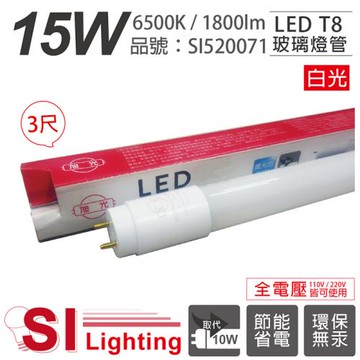 2入 【旭光】 LED T8 15W 6500K 白光 3尺 全電壓 日光燈管 SI520071