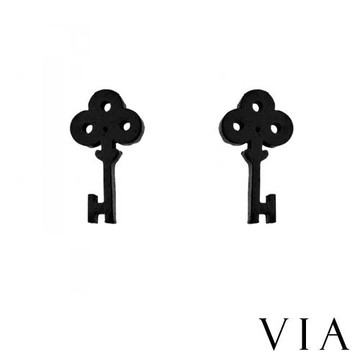 【VIA】時尚系列 秘密的鑰匙造型白鋼耳釘 造型耳釘 黑色