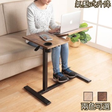 樂嫚妮 無段式升降氣壓桌/可摺疊收納邊桌 深木紋色