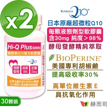 【赫而司】日本KANEKA原廠Q10(30顆*2罐)超微粒天然發酵Q10輔酵素+胡椒鹼軟膠囊,抗氧化促進新陳代謝