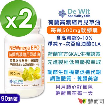 【赫而司】月見草油EPO-500mg軟膠囊(90顆*2罐)荷蘭SKAL認證,冷壓濃縮萃取γ-次亞麻油酸GLA