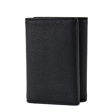 COACH 男款 荔枝紋輕便三折短夾-黑色