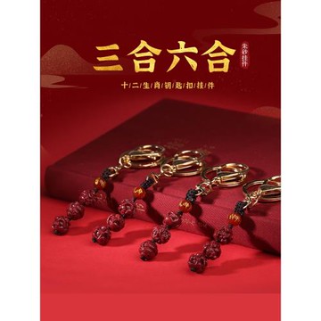 朱砂三合六合掛件本命年生肖馬鼠牛兔蛇手機鏈汽車鑰匙扣吊墜男女
