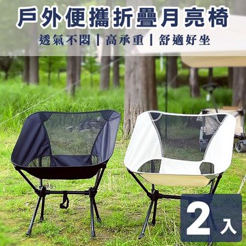 【灰熊厲害】舒適透氣戶外露營摺疊月亮椅 露營椅 戶外椅 野餐椅(2入)