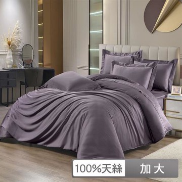 貝兒居家寢飾生活館 300織頂級日旅素色天絲四件式兩用被床包組 特大雙人 落日紫