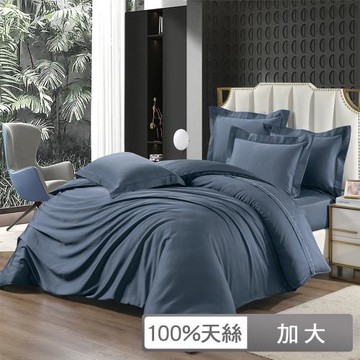 貝兒居家寢飾生活館 300織頂級日旅素色天絲四件式兩用被床包組 加大雙人 深冽藍