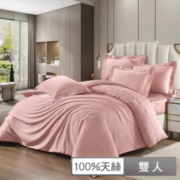 貝兒居家寢飾生活館 300織頂級夜泊素色天絲四件式兩用被床包組 雙人 夕嵐粉
