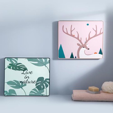 【LEZUN/樂尊】免打孔貼墻浴室鏡 壁掛化妝鏡帶置物架 橫豎可掛 50*70cm 方形浴室鏡