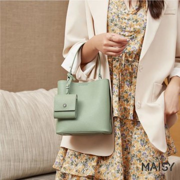 【MAISY】時尚真皮優雅純色水桶包(現+預 綠色)