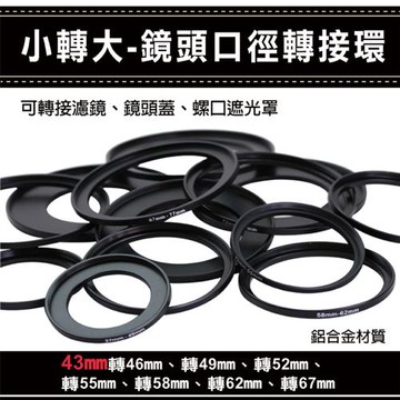 鼎鴻@小轉大轉接環 通用副廠配件小轉大-鏡頭口徑轉接環 43mm轉46 49 52 55 58 62 67mm
