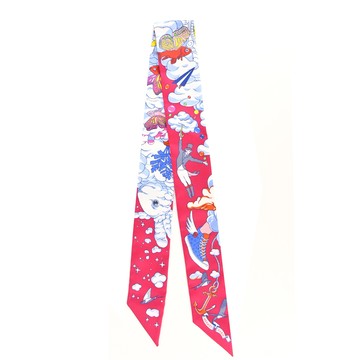 Hermes 愛馬仕 Sur Mon Nuage雲端騎士 Twilly絲巾(桃粉)