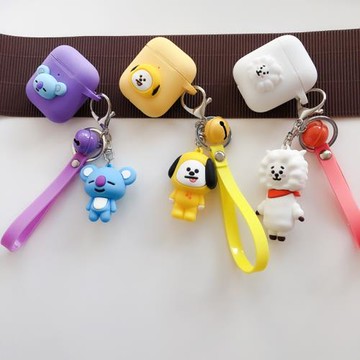 RJINHIT BTS防彈少年團卡通鈴鐺掛件耳機套適用蘋果airpods pro 1/2硅膠耳機殼airpods3 pro2