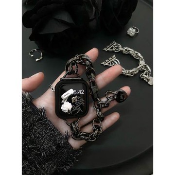 適用蘋果手表表帶applewatch9手表帶iwatch8/7/6se代新款S10/11金屬珍珠鏈ultra智能運動女款高級感創意輕奢