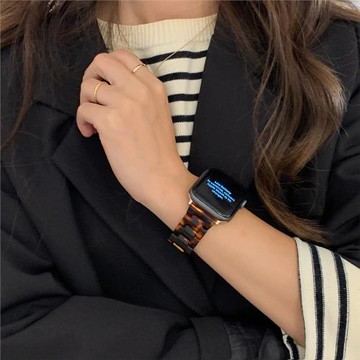 適用iwatch7表帶蘋果手表6代表帶applewatch5玳瑁琥珀樹脂亞克力iwath71234se簡約個性創意小眾40/44/41/45mm