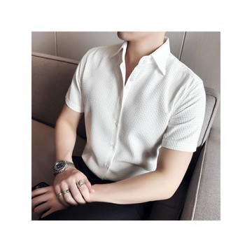華夫格襯衫男短袖意式商務襯衣夏季薄款冰絲高級感痞帥垂感上衣男