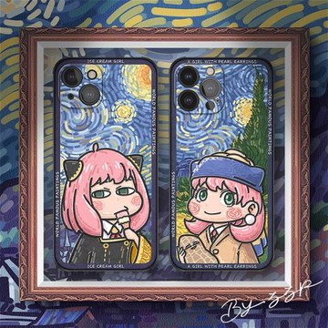 沃配油畫阿尼亞 適用蘋果13手機殼iphone16星空12mini搞怪女15promax新款ip14可愛11間諜過家家xs全包8plus保