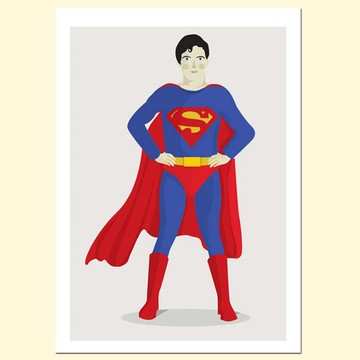 【摩達客】西班牙知名插畫家Judy Kaufmann藝術創作海報掛畫裝飾畫-超人 (附Judy本人簽名)(含木框)