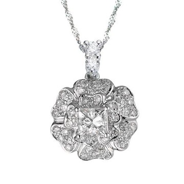 Crossfor 輕奢滿鑽系列 懸浮鑲嵌閃動項鍊 F款-傾心愛慕 日本進口主鑽 s925純銀 項鍊長40+5cm 銀色