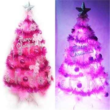 摩達客耶誕★台灣製4尺(120cm)特級粉紅色松針葉聖誕樹 (銀紫色系配件+100燈LED燈粉紅白光1串)(附控制器跳機) (本島免運費)