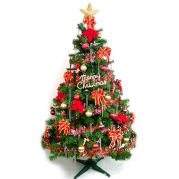 摩達客耶誕-台灣製 6呎 / 6尺(180cm)豪華版裝飾綠聖誕樹 (+紅金色系配件組)(不含燈)(本島免運費)
