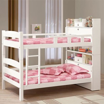 【KIKY】布加迪|書架型實木3.5尺雙層床架 上下舖 橡膠木