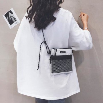 ins潮情侶斜挎小包包女夏網格信封包簡約手機包小挎包休閑單肩包