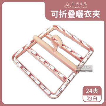 生活良品 旋轉防風可折疊曬衣夾 x1 (24夾-粉白)