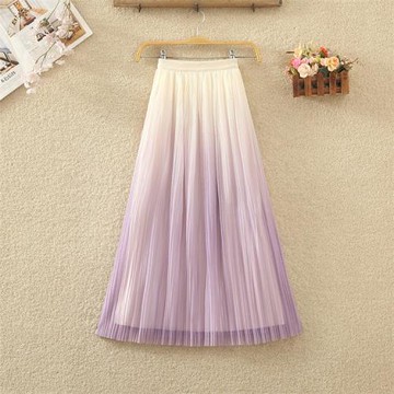 漸變色百褶半身裙女春夏新款松緊腰顯瘦中長款網紗裙仙女裙子紗裙