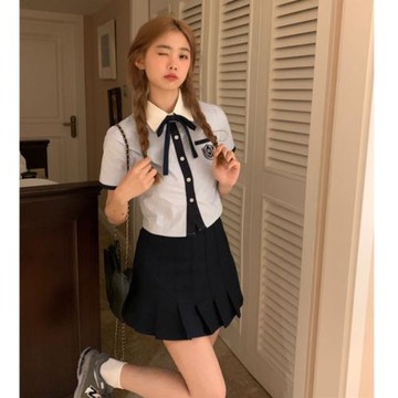 韓系制服學院風短袖襯衫夏季套裝女百褶半身裙今年流行漂亮兩件套