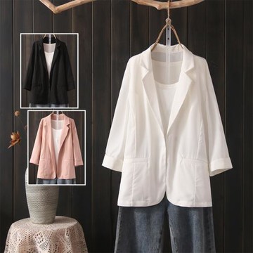 【米蘭精品】現貨+預購女外套高級西裝外套西服外套-薄款微透七分袖純色女外套6色74lc104