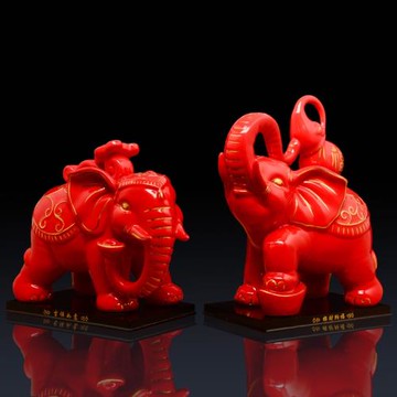 陶瓷紅色大象擺件一對招財鎮宅客廳酒柜辦公室家居裝飾品風水擺設
