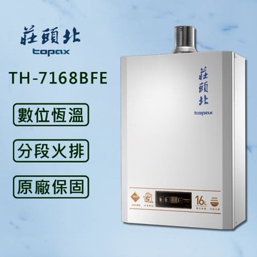 贈1600元全聯禮券【莊頭北】16L數位恆溫型熱水器 TH-7168BFE (NG1/FE式) (全國安裝) 分段火排 強制排氣