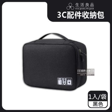 生活良品-韓版3C配件耐磨防潑水耐衝擊大容量多功能可調式分隔收納包1入/袋-黑色(耐碰撞彈性隔層分類旅行拉鍊包)