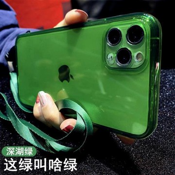 韓國簡約復古墨綠色蘋果11手機殼掛脖式適用iphone14保護套13透明12帶掛繩17proMax全包邊15防摔8plus新款6軟
