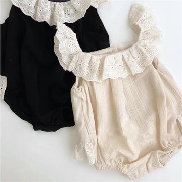 ins韓版嬰兒吊帶連體衣洋氣時髦蕾絲包屁衣網紅女寶寶夏裝外出服