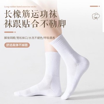襪子女中筒襪運動襪跑步健身棉襪毛巾襪女襪白色春秋季女生長筒襪