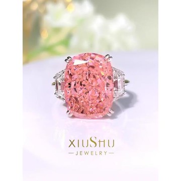 奢華雷迪恩粉鉆12克拉戒指女彩鉆925銀微鑲高定珠寶款進口高碳鉆