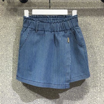 牛仔半身裙2025夏季新款條紋歐洲站松緊腰高腰顯瘦不規則A字褲裙