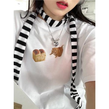 [REコンテナ] 韓版超級可愛橘貓吐司印花寬松純棉短袖T恤女ins