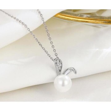 RJ New York 俏皮兔耳珍珠閃亮鋯石項鍊(銀色)