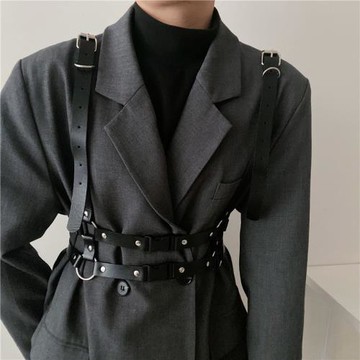 LGX韓國暗黑系個性背帶式皮質腰帶女帥氣百搭束腰配西裝襯衫腰封