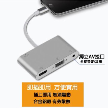 Max+ 蘋果影音傳輸線 Lightning to HDMI VGA MHL 銀色 單一商品 1條