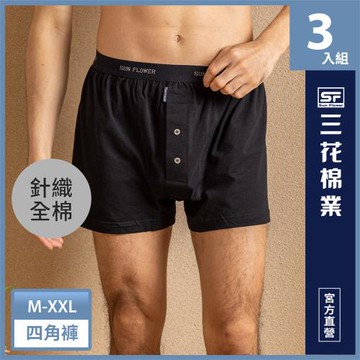 三花大尺寸針織平口褲.四角褲.男內褲(3件組)