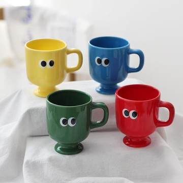 呆萌搞怪大眼仔馬克杯高腳咖啡杯水杯早餐杯復古大眼睛情侶酒杯